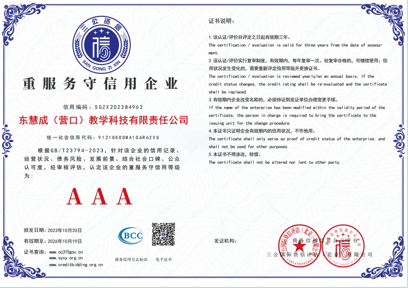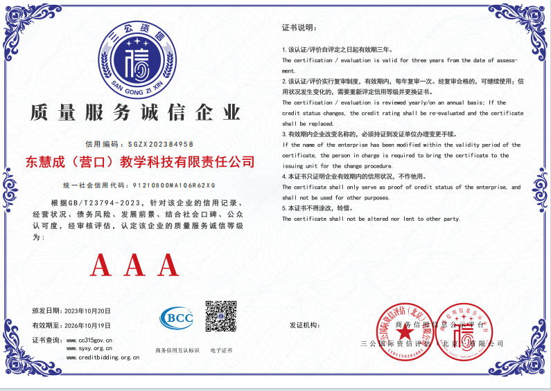 東慧成(營(yíng)口)教學(xué)科技有限責(zé)任公司: